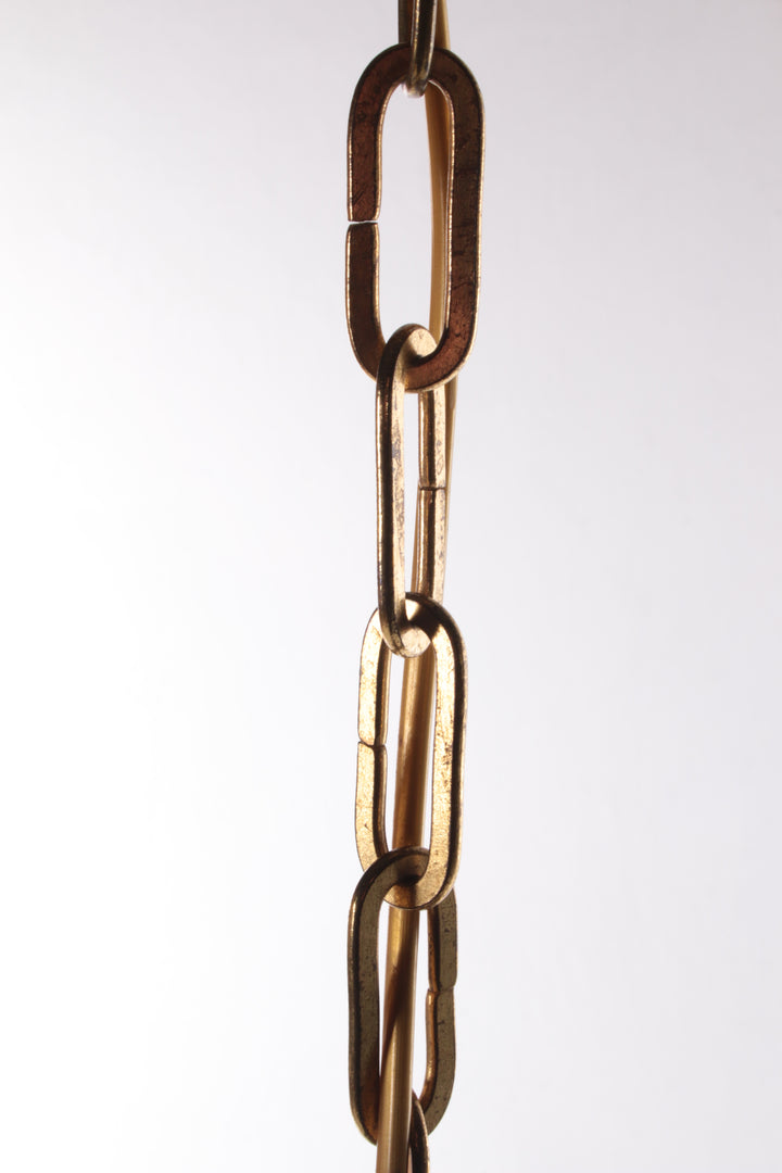 This vintage pendant lamp, designed in the Hollywood Regency style, features a stunning white mottled glass globe that adds a touch of elegance and sophistication to any room. The glass globe is beautifully complemented by a metal fixture with a brass finish, suspended from a sturdy brass chain and ceiling cap. The design evokes both the glamour of the Hollywood Regency era and a hint of Art Deco influence, creating a timeless and versatile lighting piece.