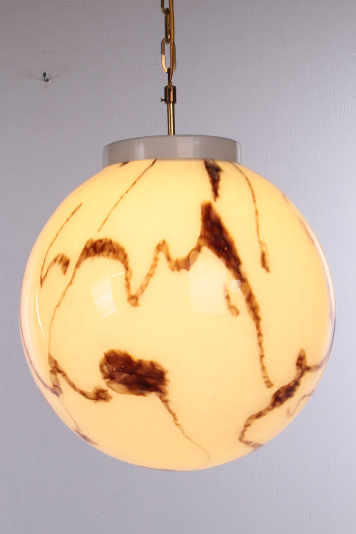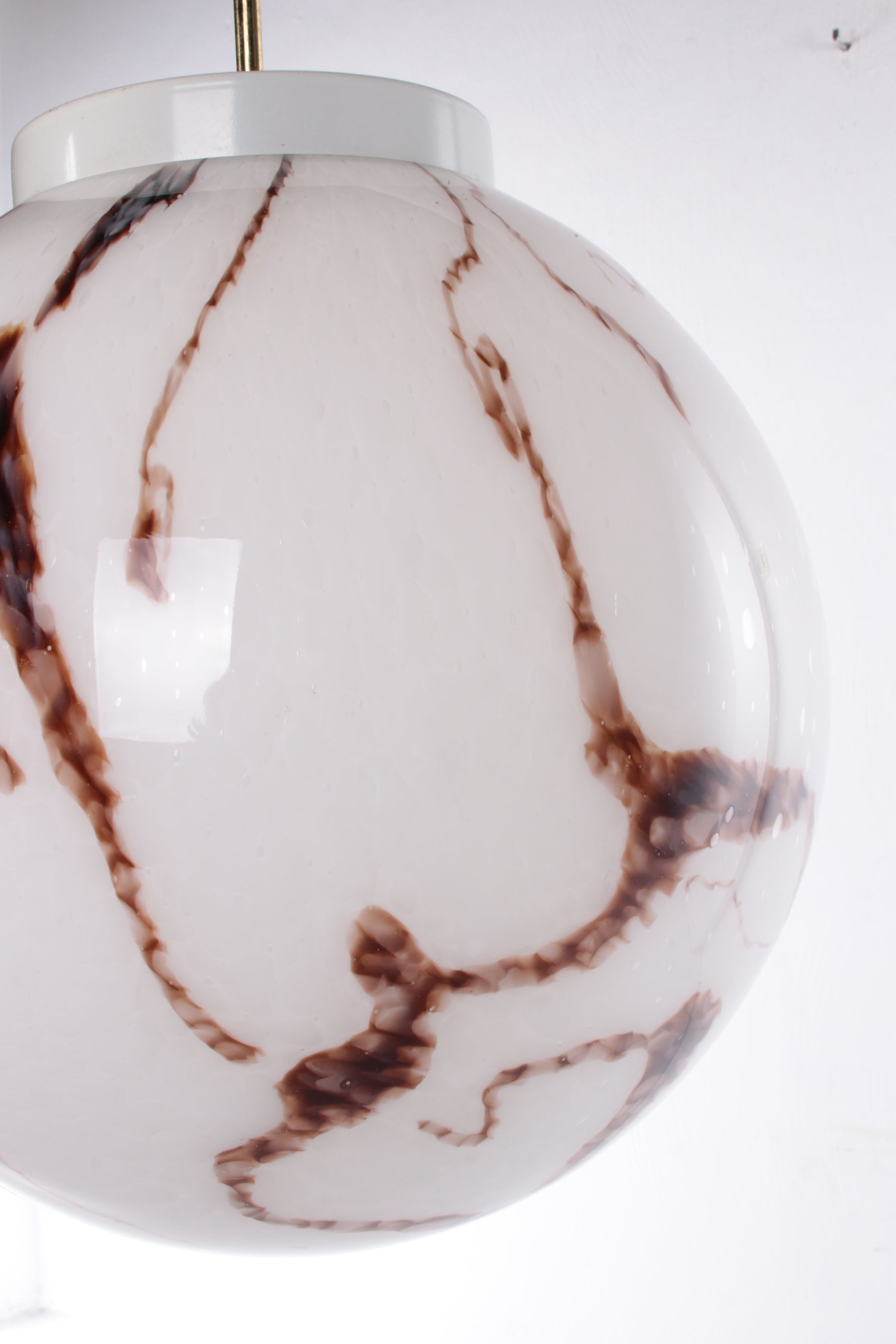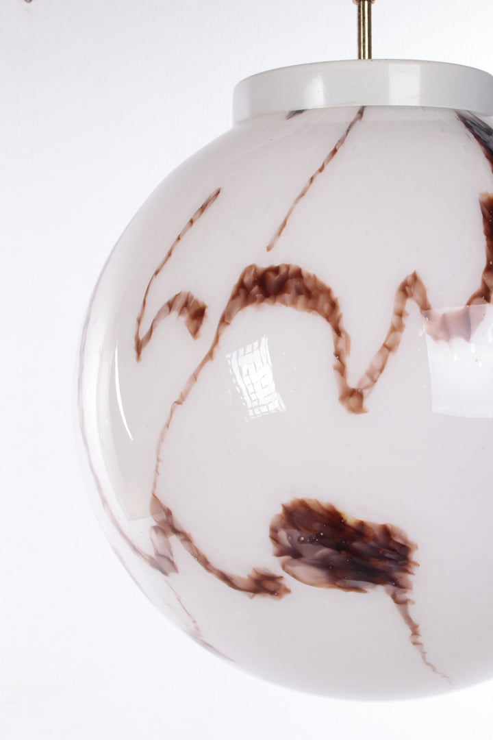 Vintage Hollywood Regency-Style Pendant Lamp with White Mottled Glass Globe