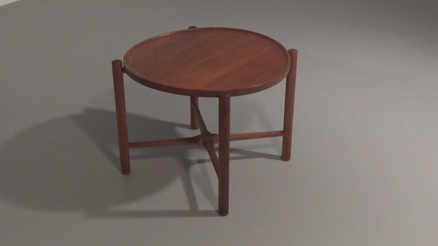 Discover the timeless elegance of the Hans J. Wegner AT35 side table, an authentic piece of Danish design from 1945. This side table, designed by the renowned designer Hans J. Wegner for Andreas Tuck, exemplifies craftsmanship and minimalist aesthetics. The AT35 is made from high-quality solid teak with beautiful teak accents, creating a warm and natural look that fits into any interior. With a diameter of 62 cm, it offers ample space for your books, coffee cup, or decorative items. The unique folding design makes the table not only a stylish addition but also a practical piece of furniture for your living space.