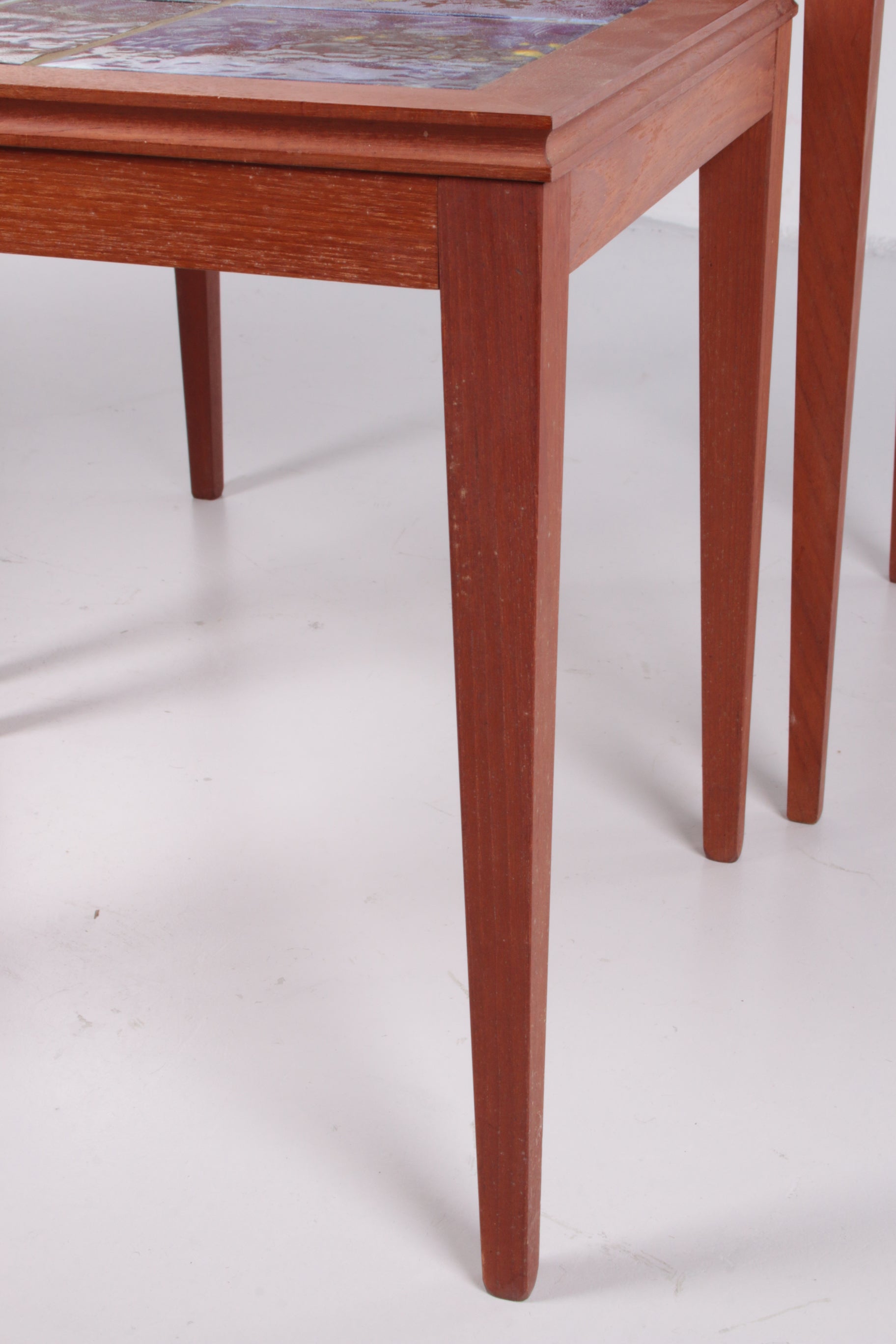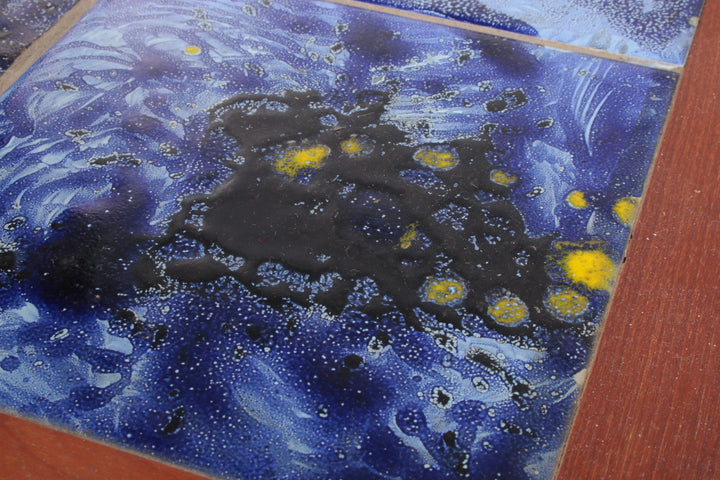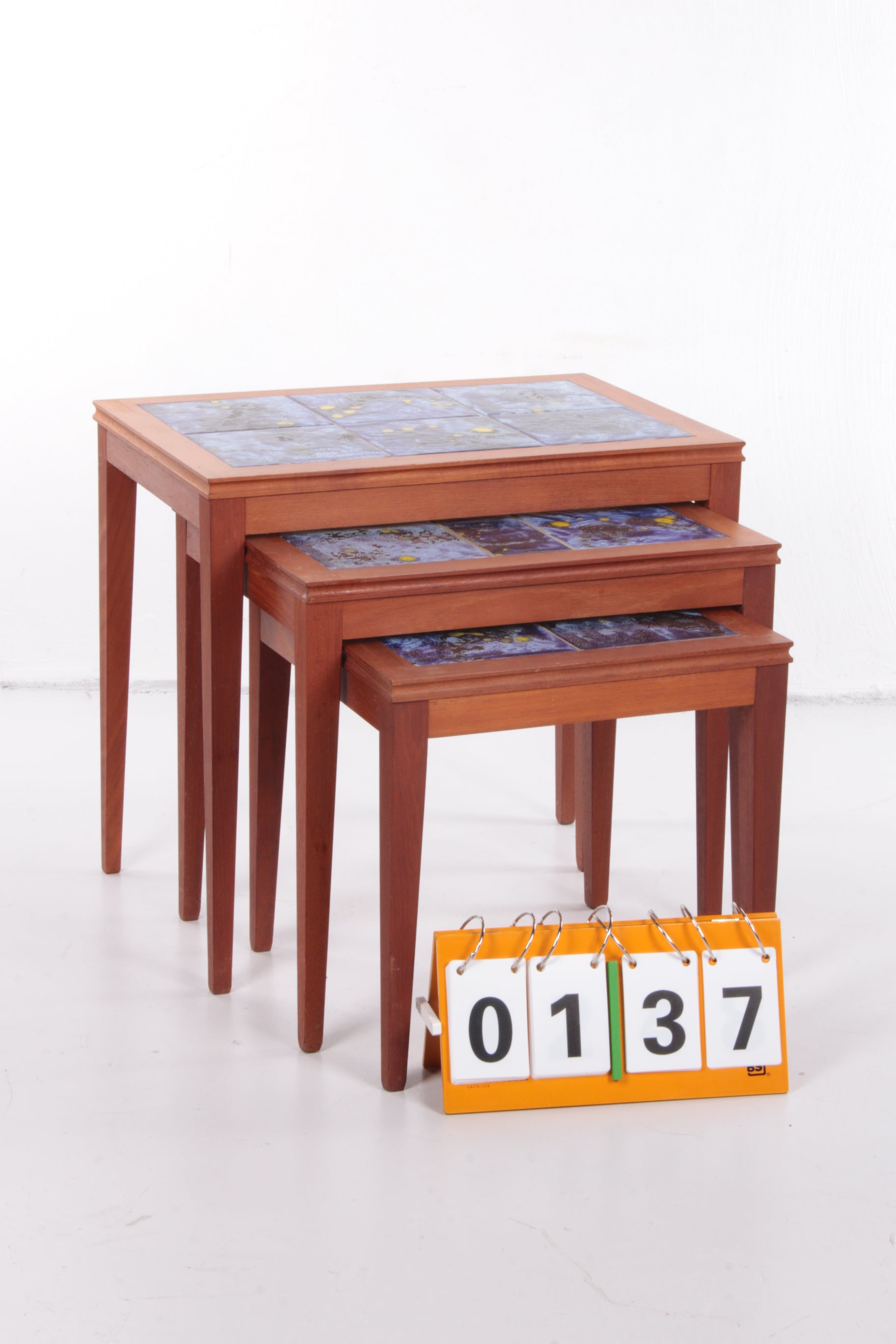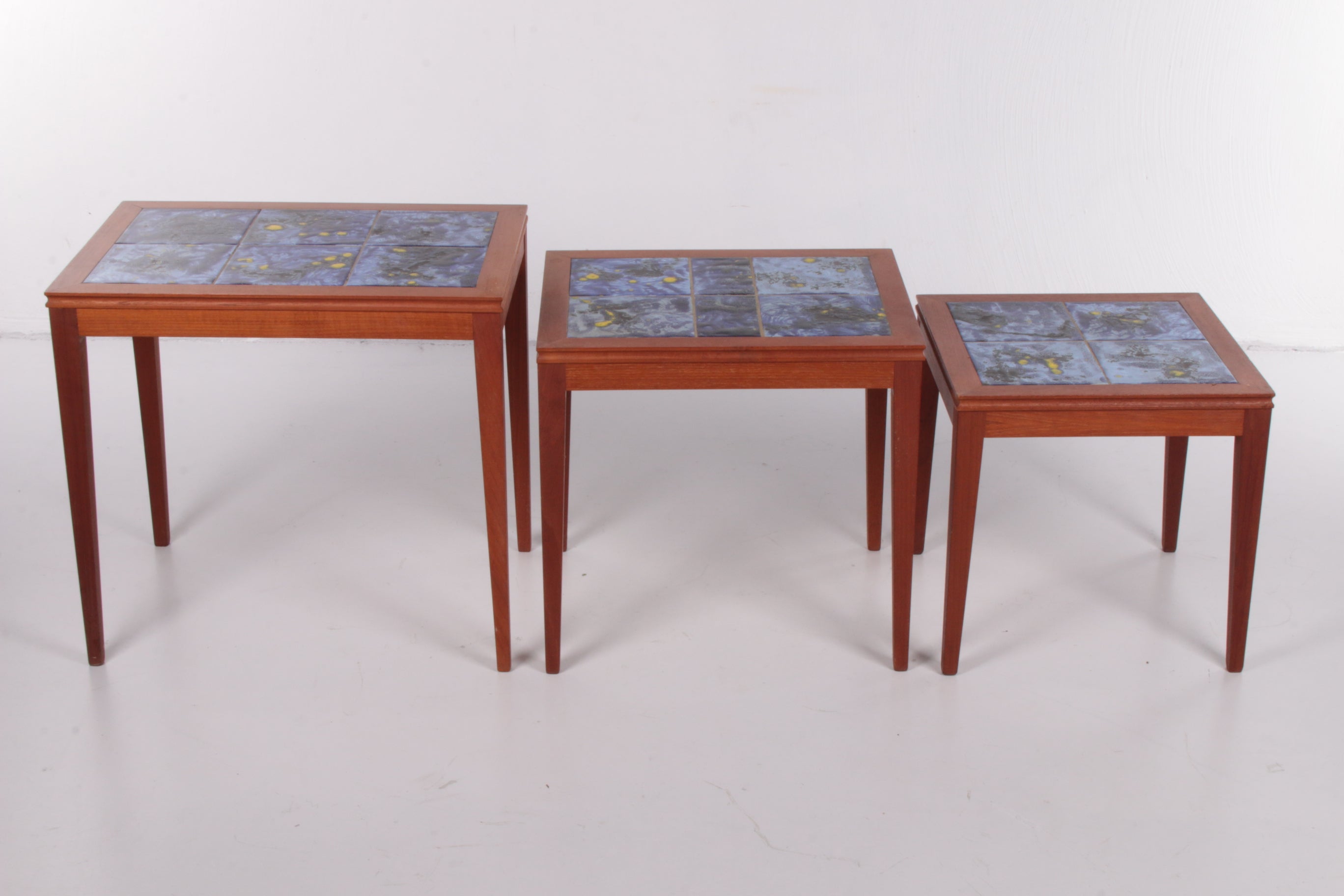 Vintage Danish Nesting Tables with Blue Ceramic Tiles