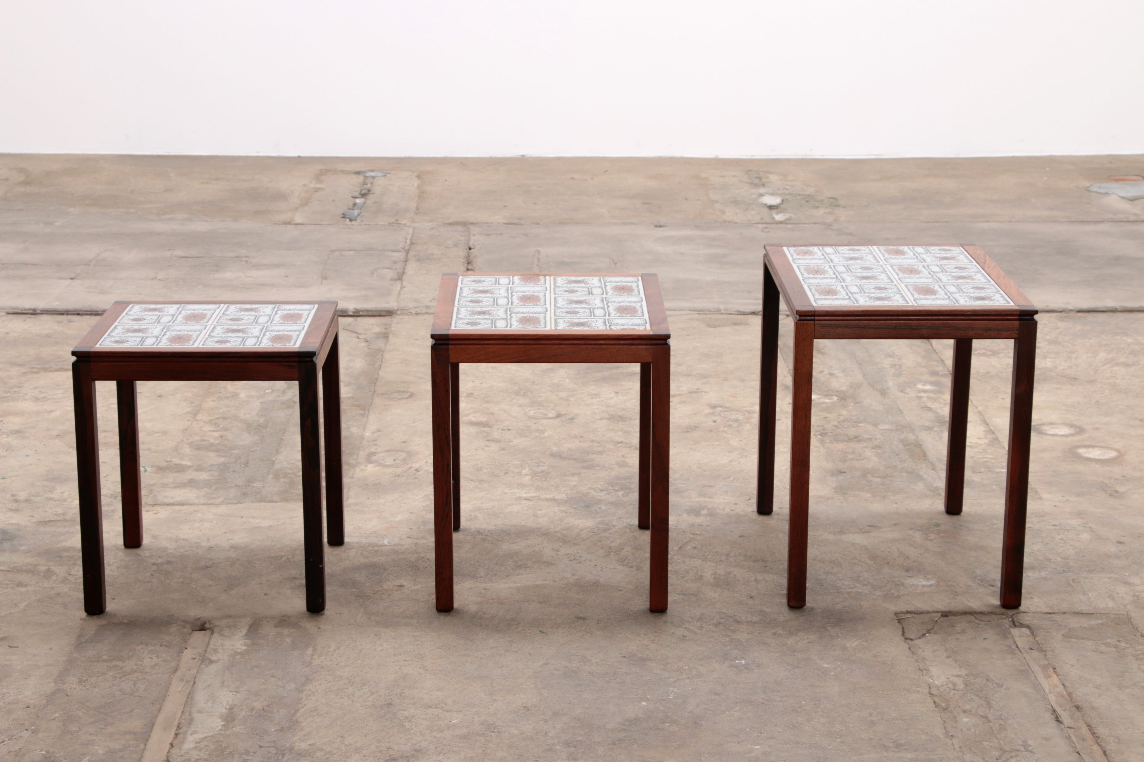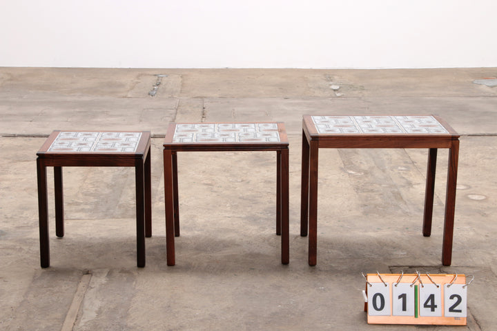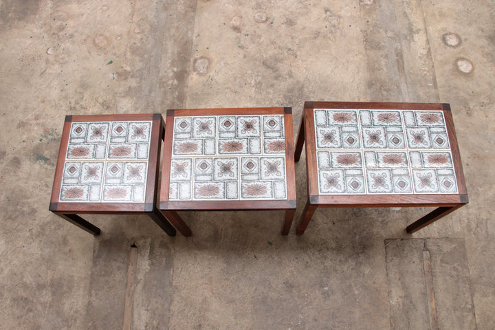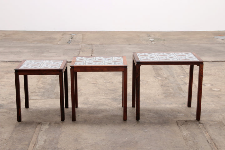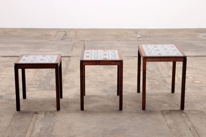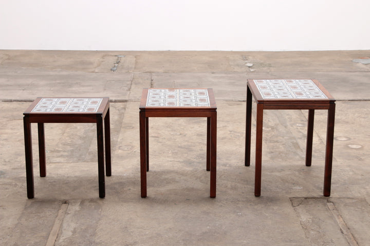 Danish Vintage Nesting Tables with Cream Brown Tiles, 1960s
