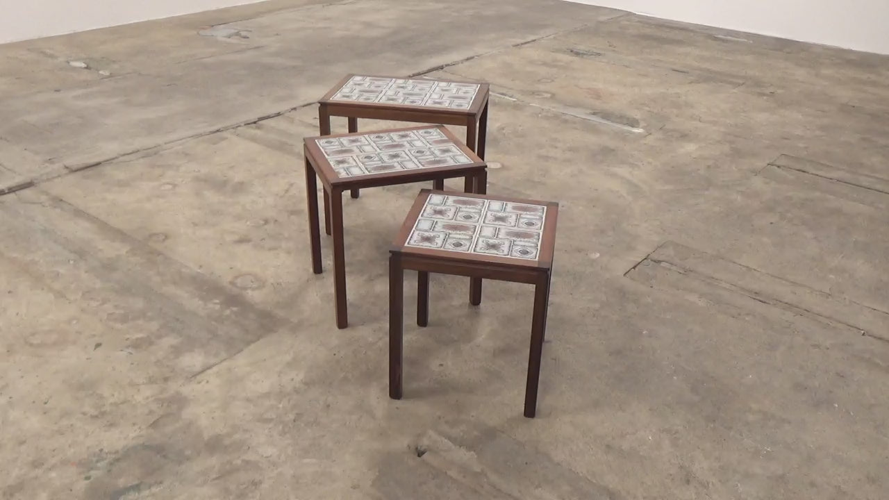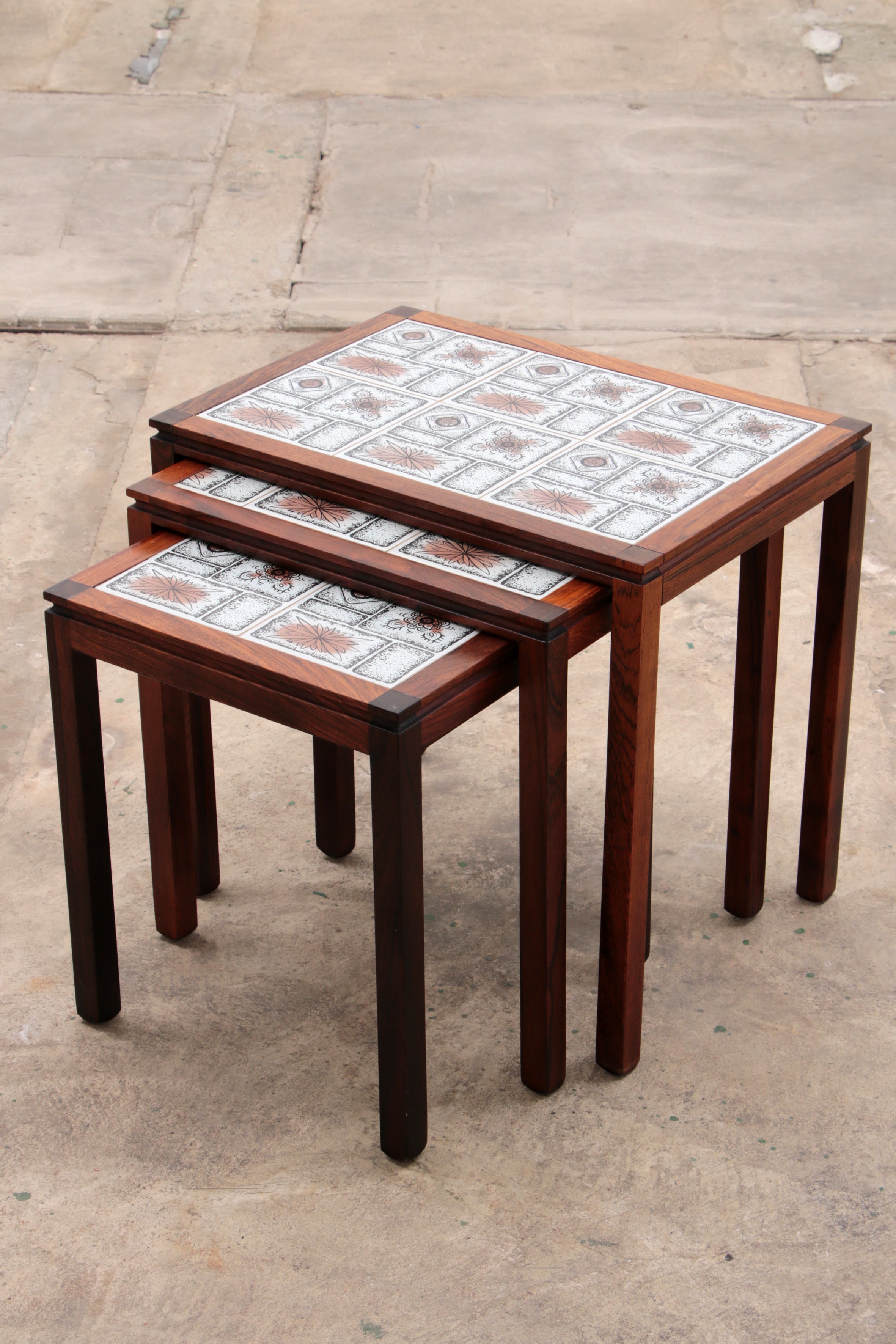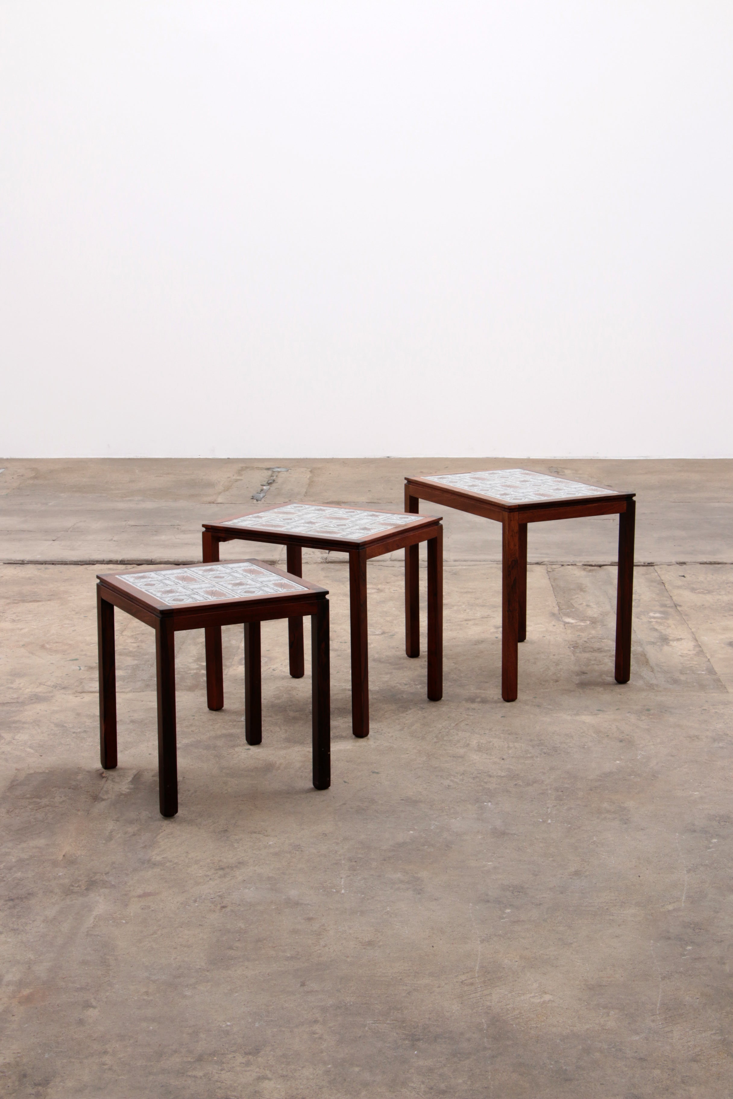 Danish Vintage Nesting Tables with Cream Brown Tiles, 1960s