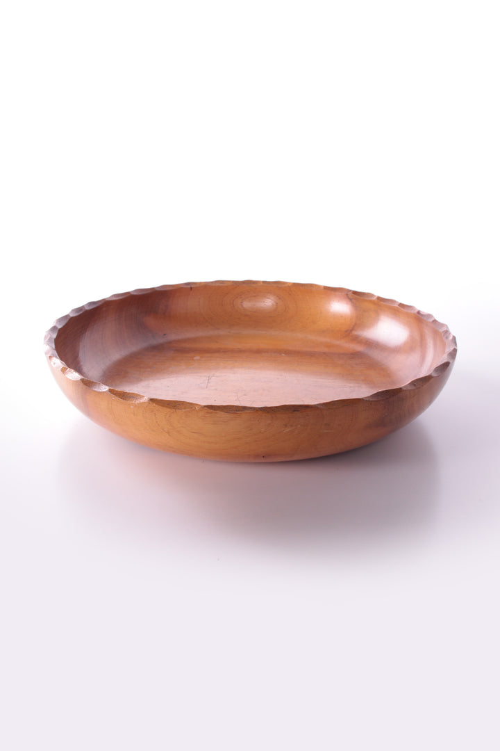 Deense schaal of fruitschaal uit de zestiger jaren met een teakhouten rand. De vintage schaal heeft een mooie warme tint.
