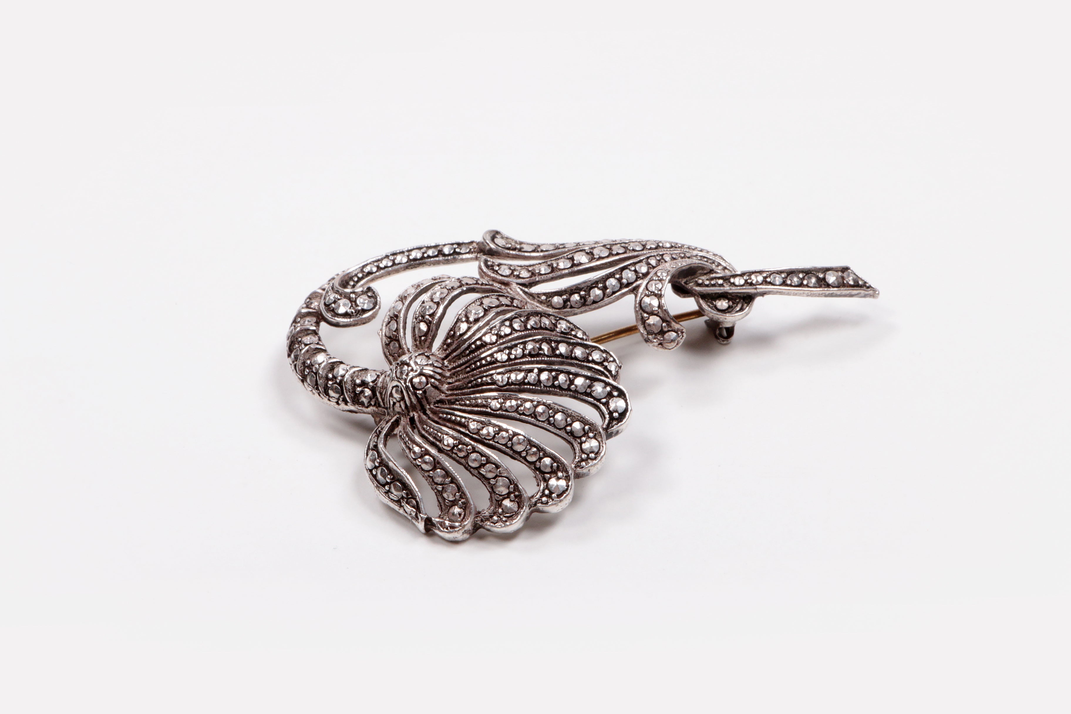 Zilveren broches met strass steentjes